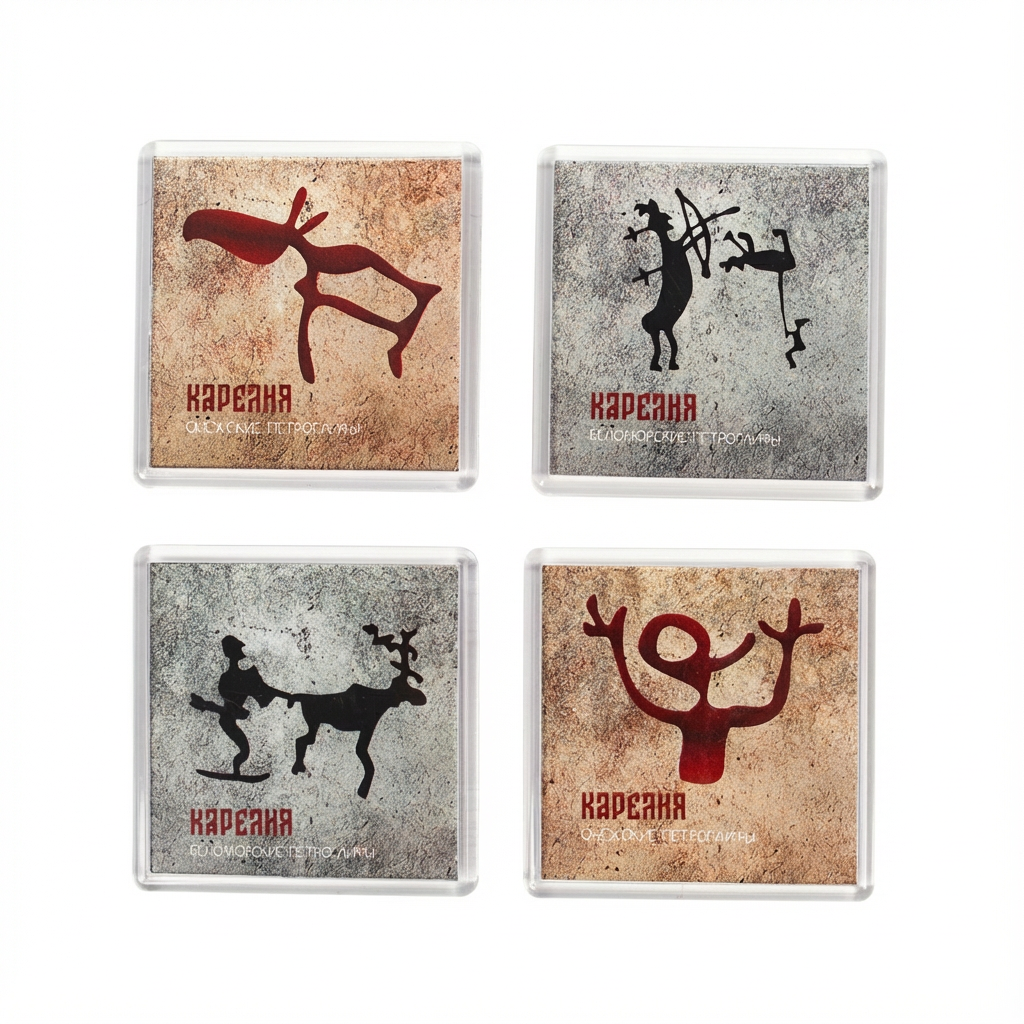 Сувенирный магнит в прозрачном пластиковом корпусе с изображениями карельских петроглифов, древних рисунков на камне, которые стали одним из символов Севера. За счёт прозрачной «капсулы» изображение выглядит ярко и аккуратно, как мини‑витрина, а формат 58×58 мм делает магнит заметным, но не громоздким. Отлично держится на холодильнике и превращает обычную поверхность в маленькое напоминание о путешествии в Карелию. Идеальный вариант небольшого подарка и коллекции: сюжеты петроглифов представлены в ассортименте.