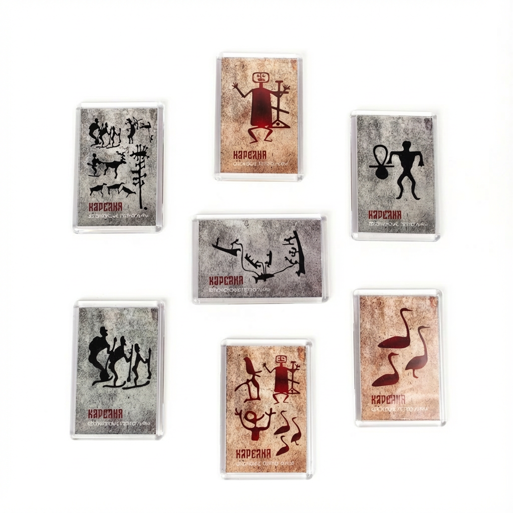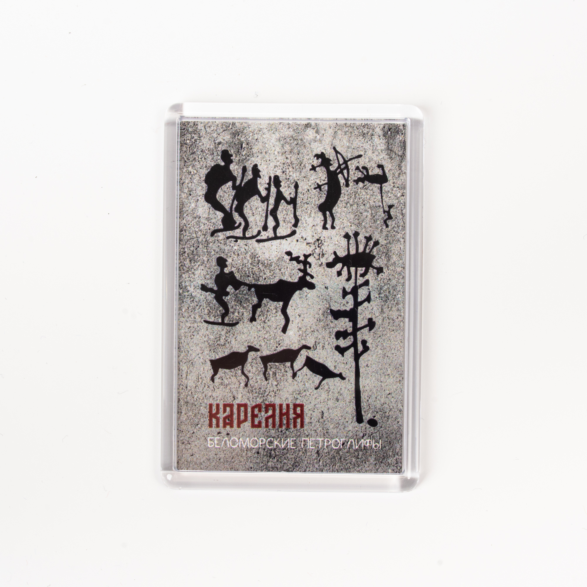 Сувенирный магнит в прозрачном пластиковом корпусе с изображениями карельских петроглифов, древних рисунков на камне, которые стали одним из символов Севера. За счёт прозрачной «капсулы» изображение выглядит ярко и аккуратно, как мини‑витрина, а формат 45×70 мм делает магнит заметным, но не громоздким. Отлично держится на холодильнике и превращает обычную поверхность в маленькое напоминание о путешествии в Карелию. Идеальный вариант небольшого подарка и коллекции: сюжеты петроглифов представлены в ассортименте.