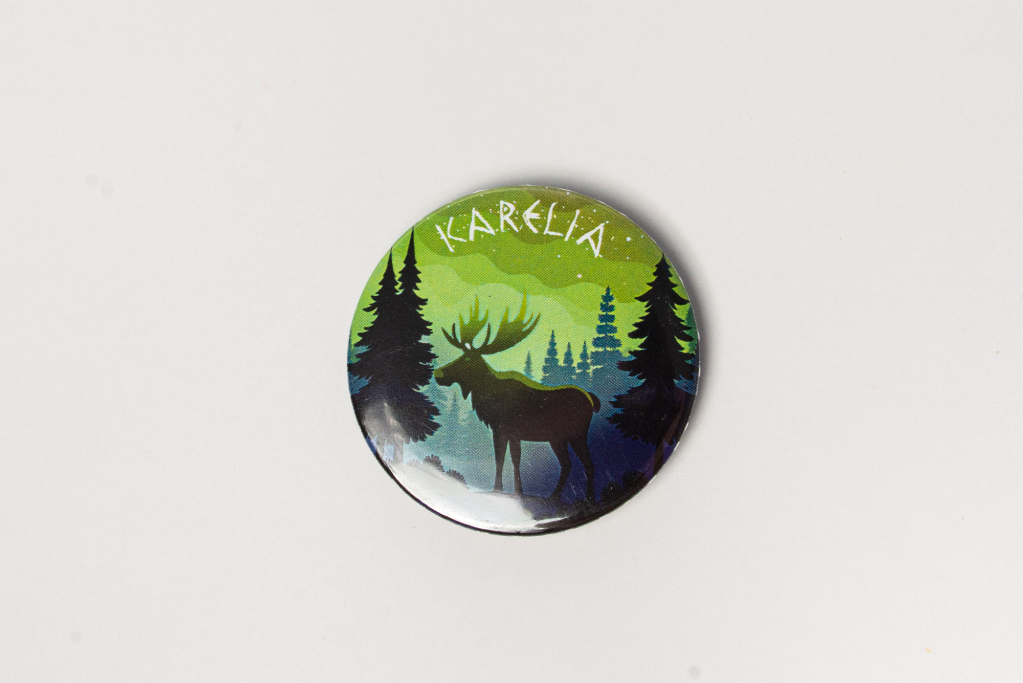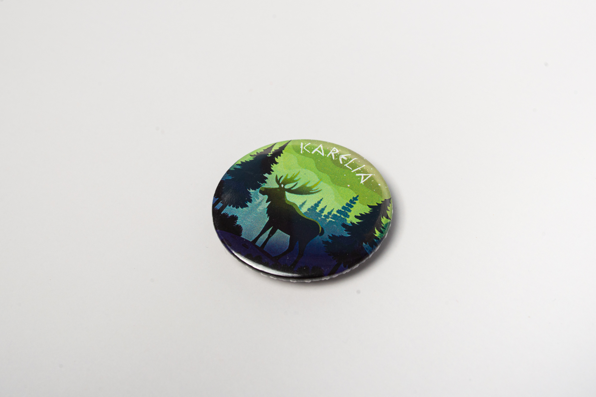 Прочные металлические закатные магниты с глянцевым покрытием отлично держатся на холодильнике и других металлических поверхностях, а их яркие рисунки создают уютную атмосферу и каждый день напоминают о путешествии в Карелию.