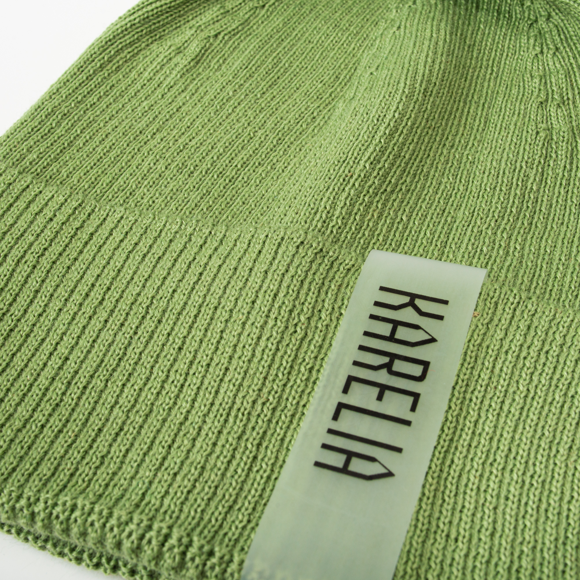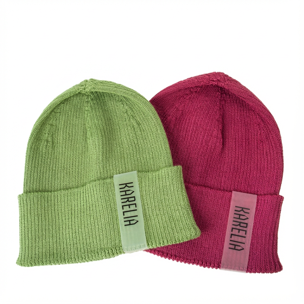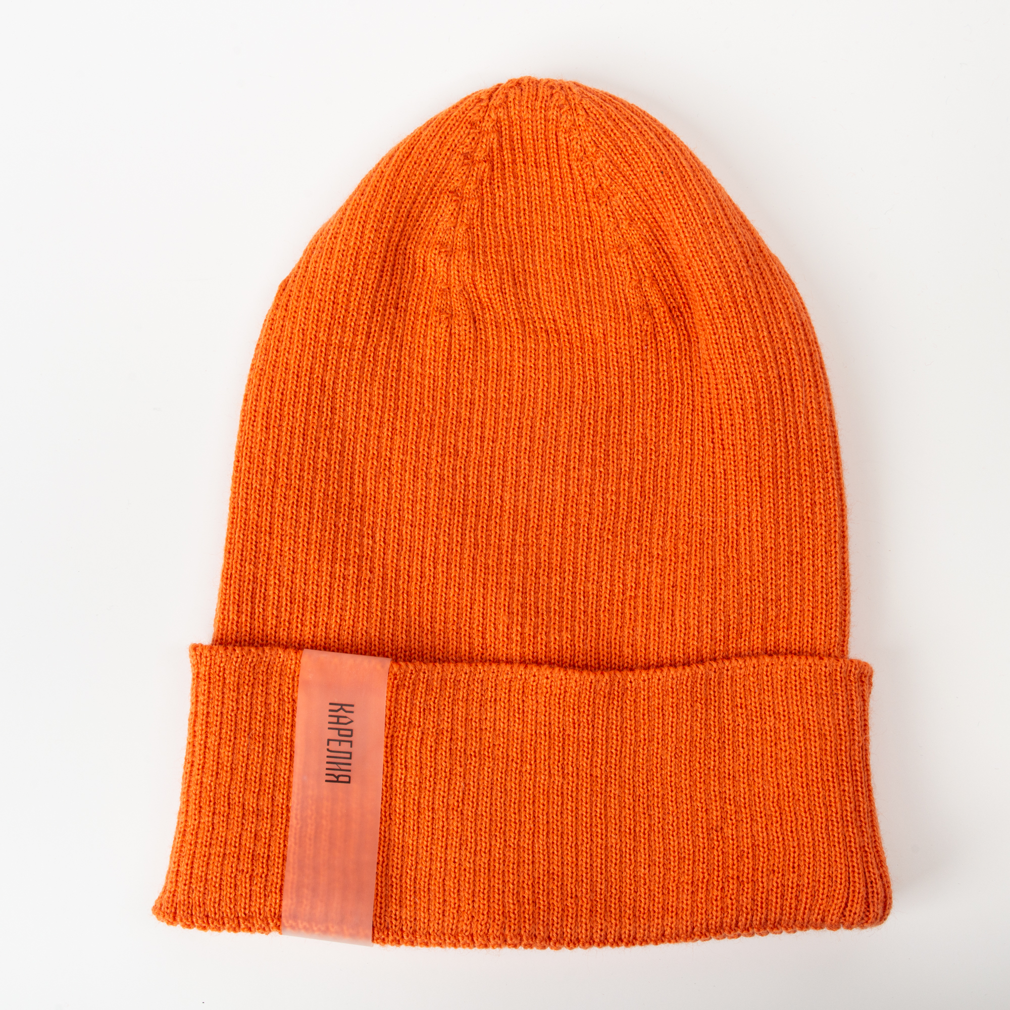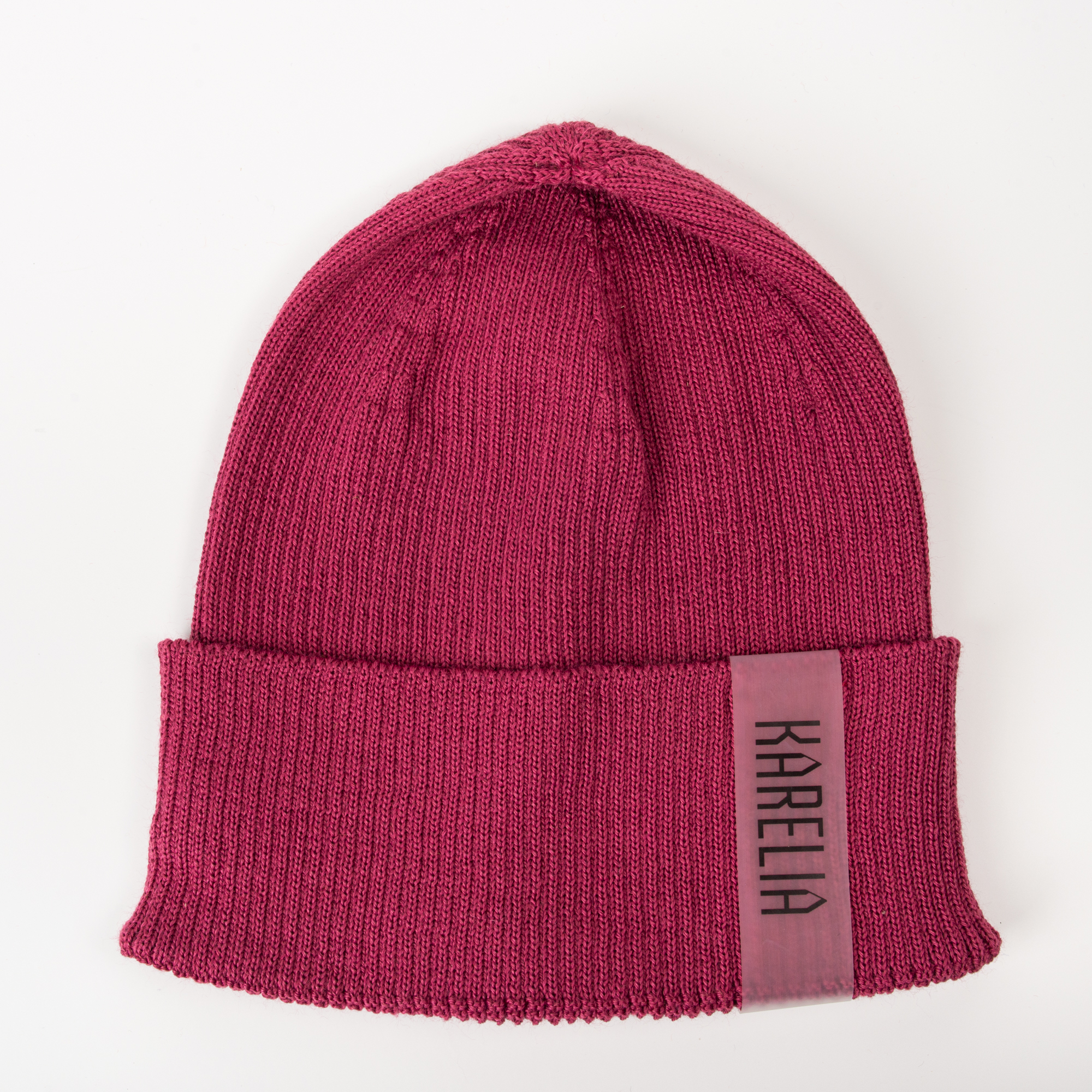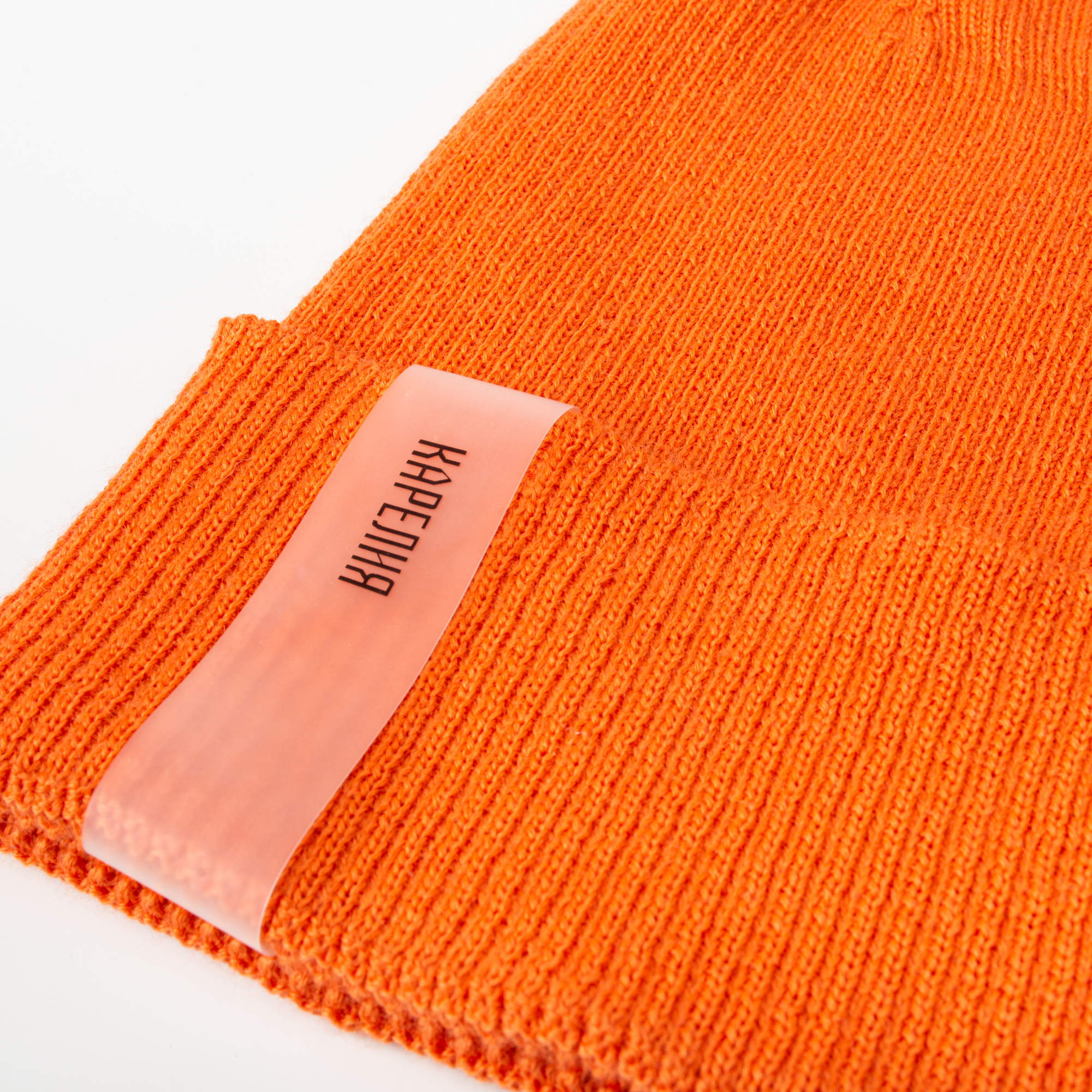 Универсальная вязаная шапка KARELIA с отворотом и фирменным ярлыком.