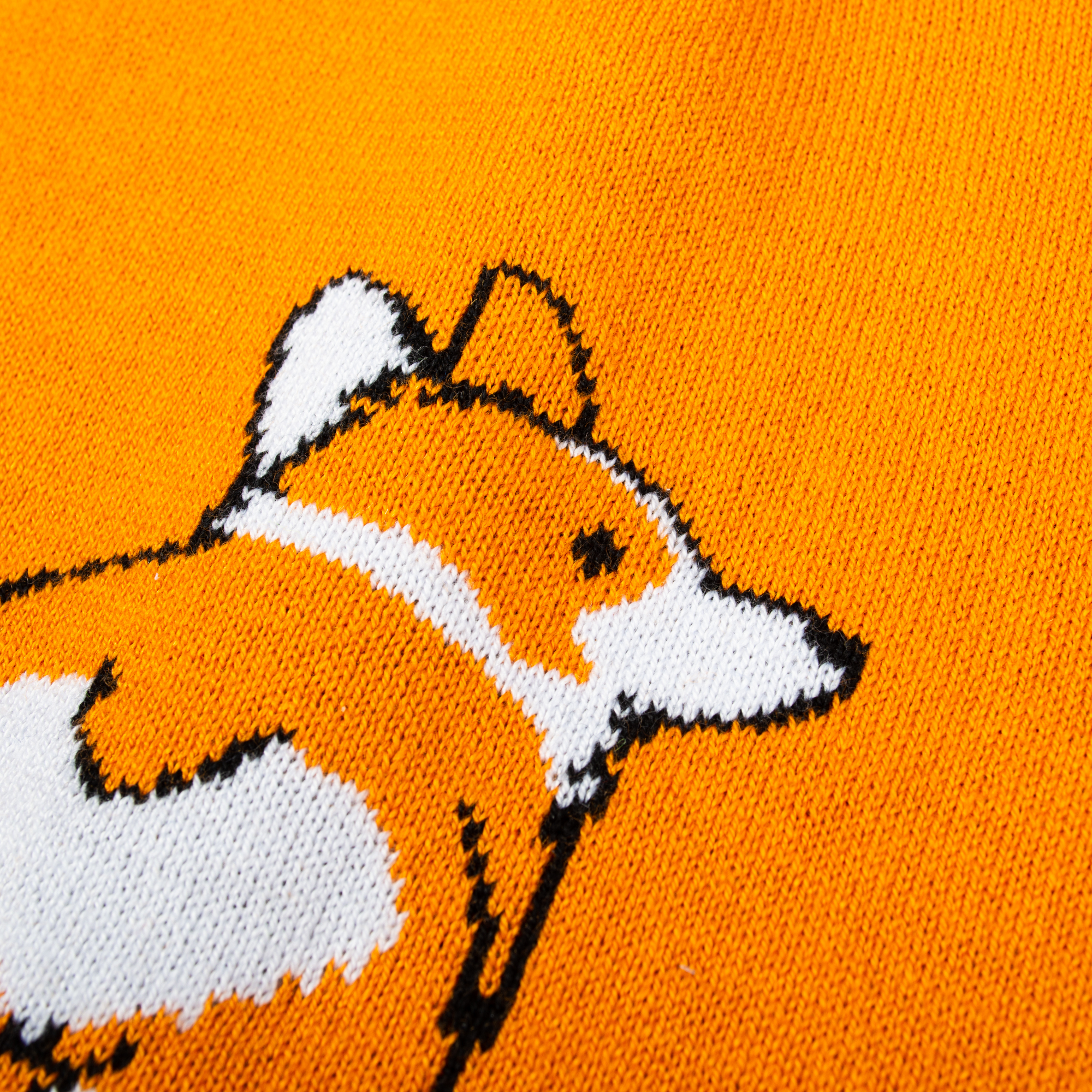 Тёплая и очень уютная шапка с помпоном и милым рисунком корги - тот самый аксессуар, который сразу поднимает настроение в холодный сезон. Яркий оранжевый цвет делает шапку заметной, а аккуратная резинка по низу помогает ей хорошо сидеть и не продуваться.