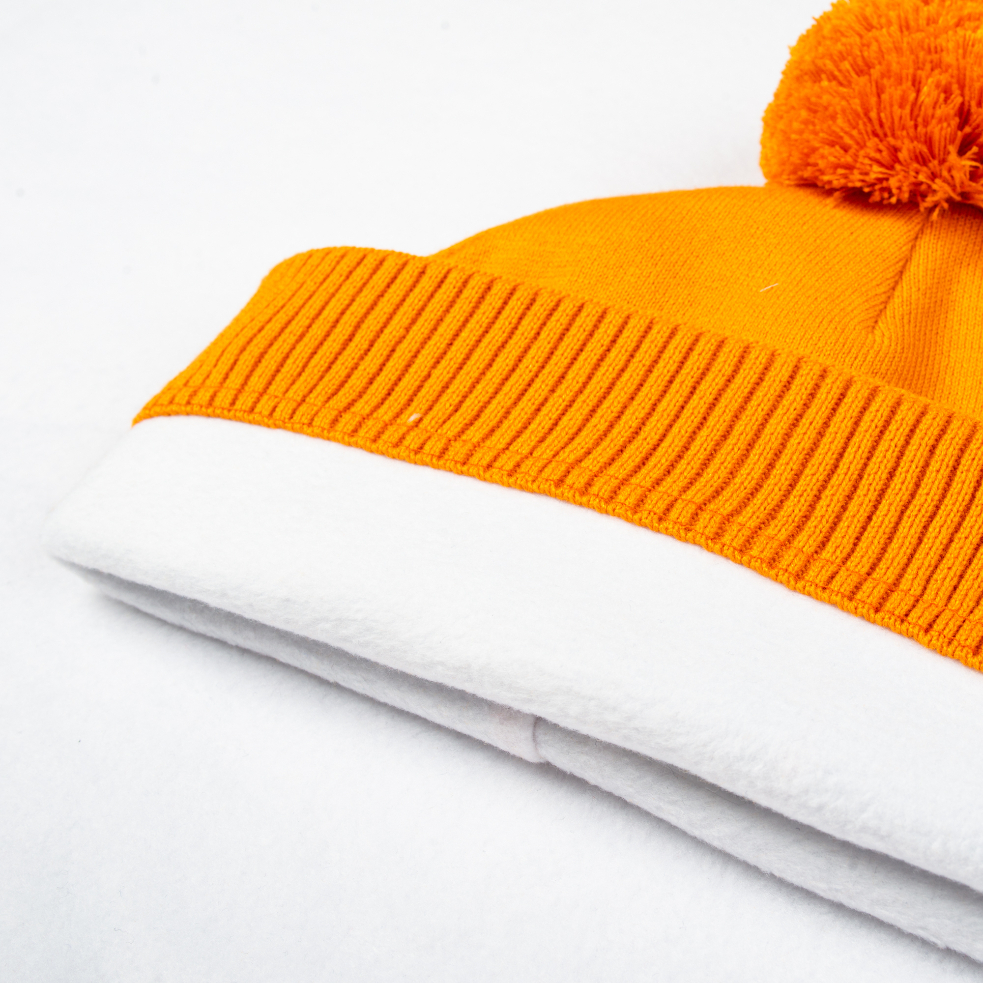 Верх шапки связан из немецкой премиальной пряжи состава 50% хлопок / 50% полиакрил. Она мягкая на ощупь, отлично держит форму и не колется. Внутри - тёплый флисовый подклад, который надёжно защищает от ветра и холода, делая модель особенно комфортной даже в затяжную зиму.