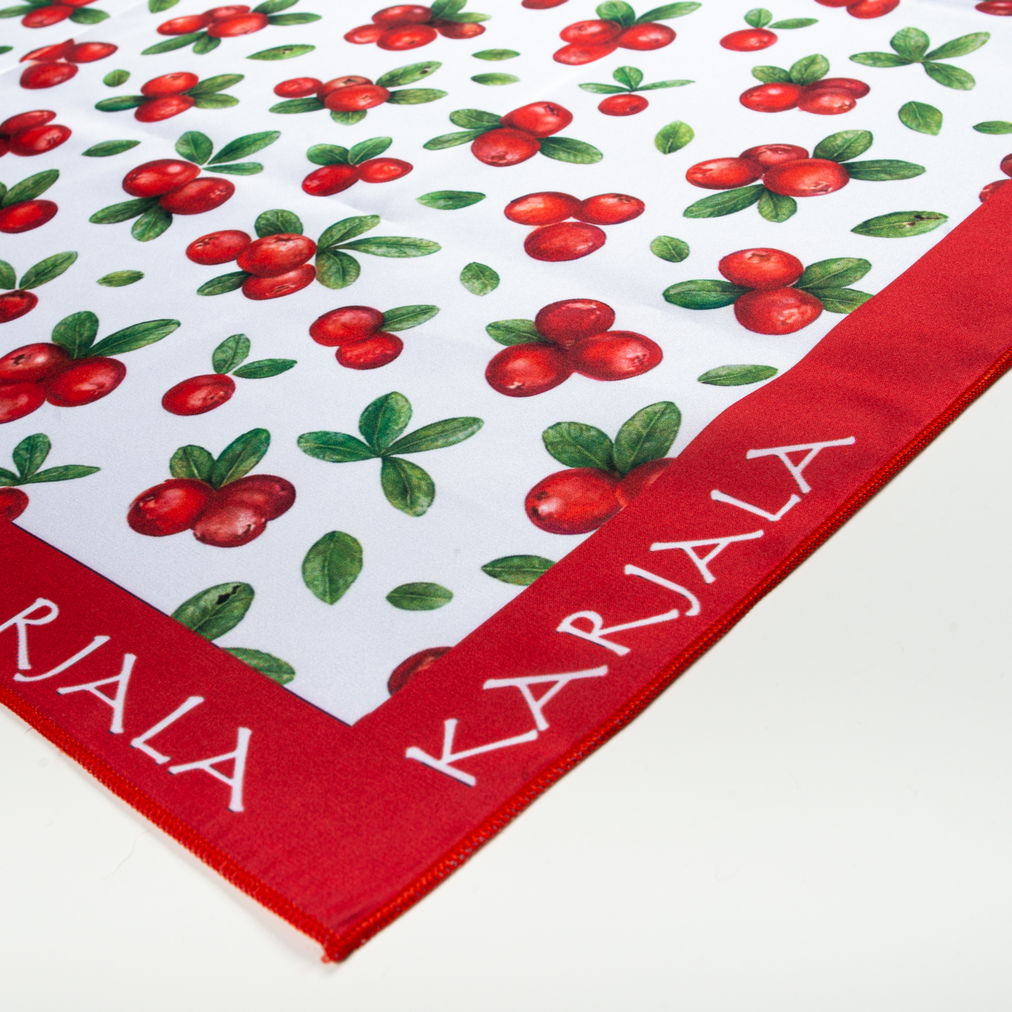 - Дизайн: брусника (акварельный ягодный принт), рамка с надписью KARJALA;