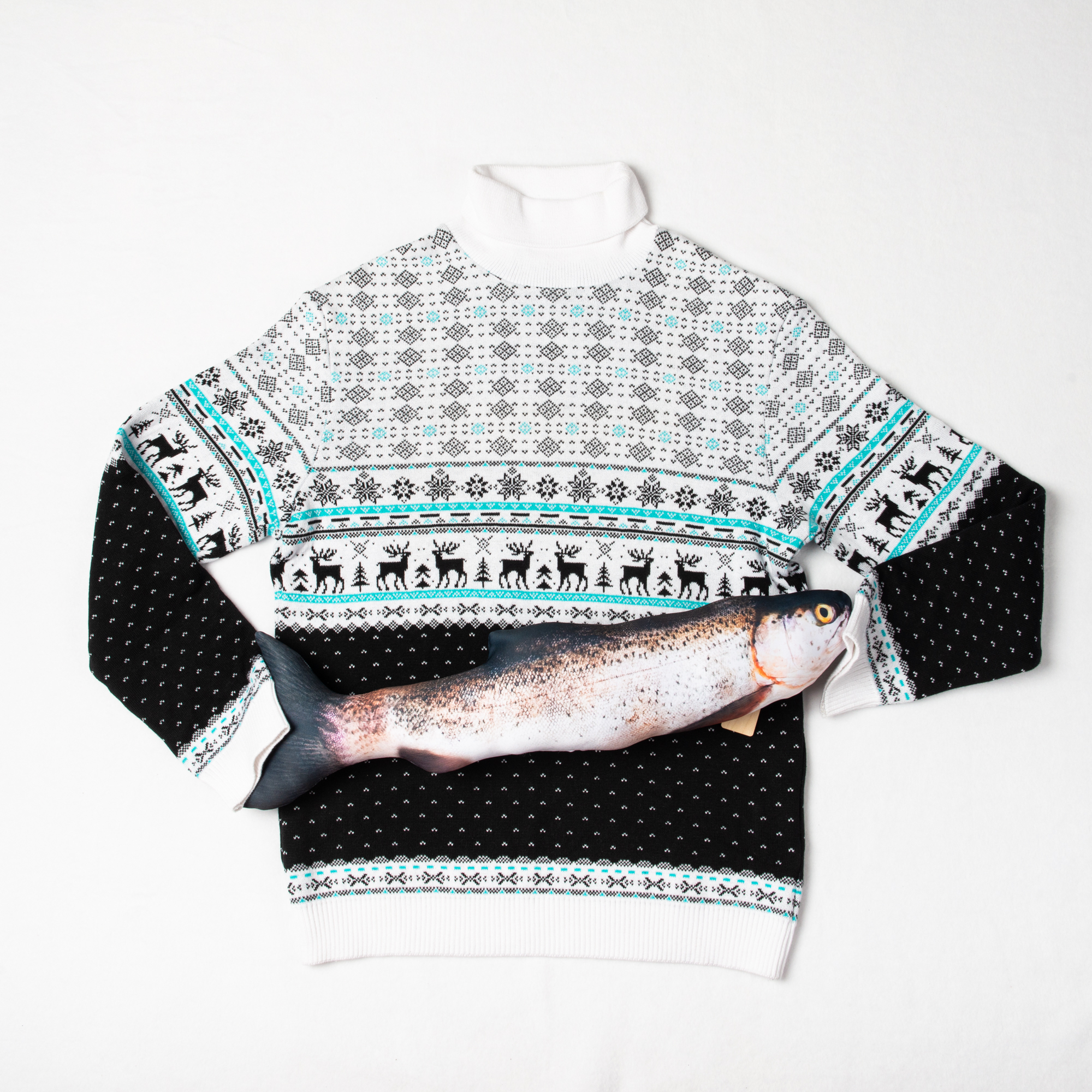 - Дизайн: северный жаккард (олени, снежинки, орнамент);