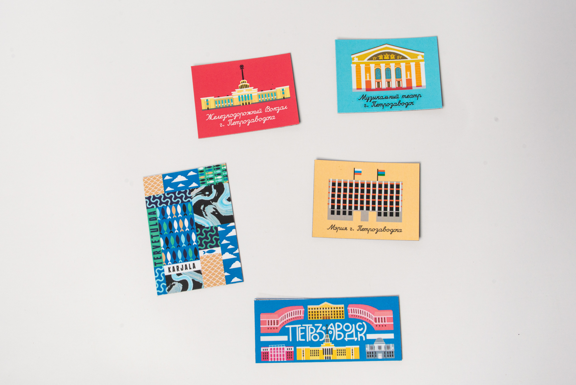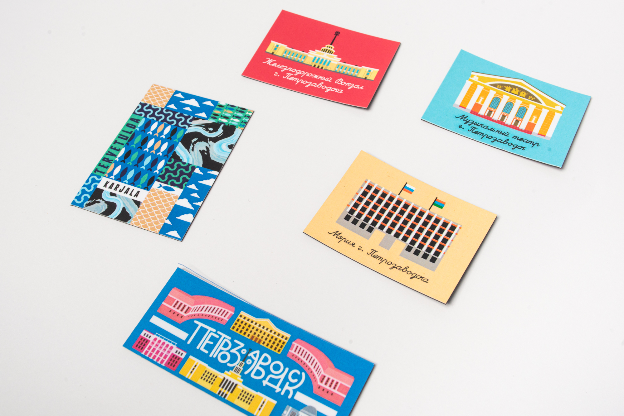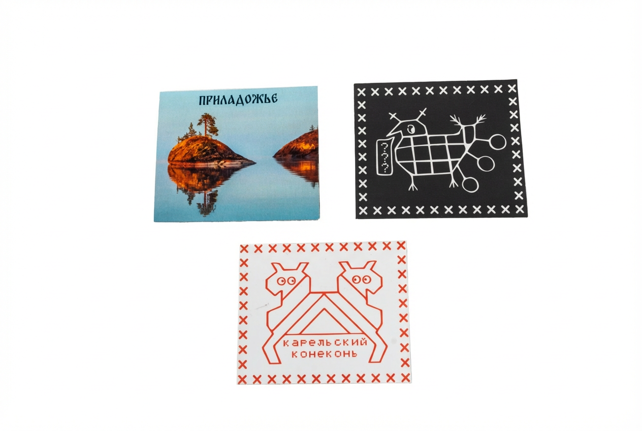 Яркая серия сувенирных магнитов из прочного винила с атмосферными карельскими сюжетами. На любой вкус: живописный пейзаж Приладожья с золотыми скалами и тихой гладью воды, древний петроглиф «Птица» в графичном стиле, и символичный «Карельский конеконь» в традиционной орнаментике, достопримечательности Петрозаводска, традиционная карельская выпечка и другое.