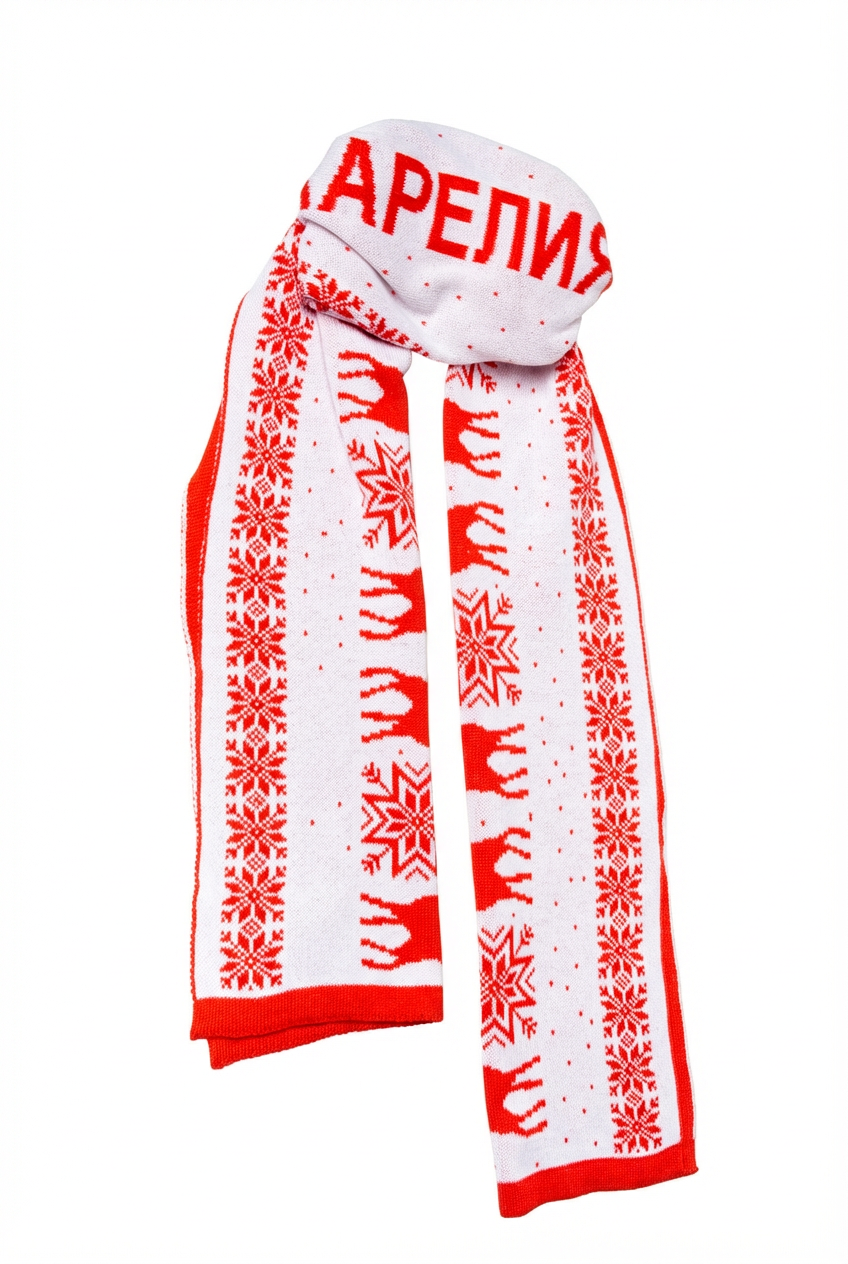 Тёплый и уютный шарф, связанный из премиальной немецкой пряжи состава 50% хлопок, 50% полиакрил. Мягкий, приятный на ощупь, не колется и отлично сохраняет форму. Узоры со снежинками, силуэтами северных оленей и карельскими орнаментами вдохновлены пейзажами Карелии. Этот аксессуар словно несёт в себе атмосферу тишины заснеженного леса, свежести морозного утра и таинственных северных легенд. Станет практичным и красивым подарком, который будет напоминать о путешествии в Карелию.