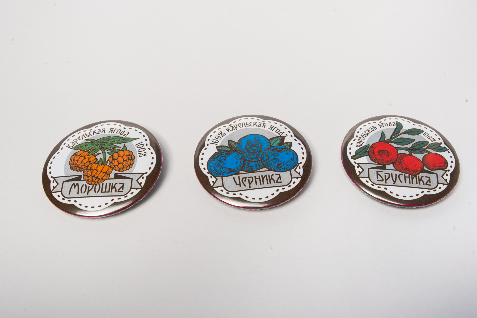 - Дизайн: стилизованные и фото‑изображения карельских ягод (брусника, черника, морошка и др.);